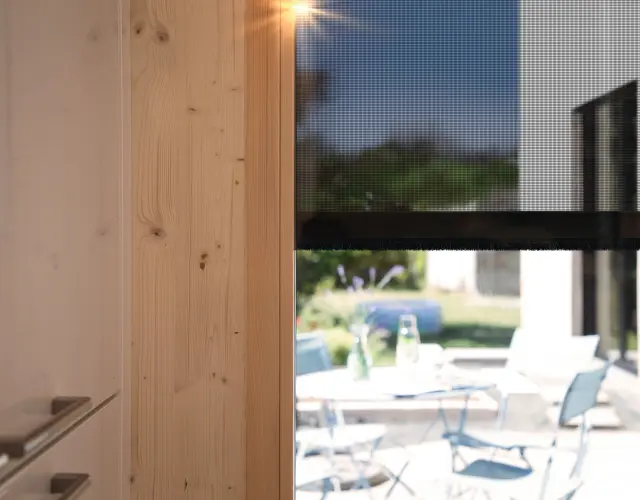 Awning fabric isn’t always the best choice – after all, sometimes the sun isn't the problem. Tiny, uninvited guests can cause a real nuisance in our homes. For this reason, Warema is now also offering front-mounted awnings with pet screens. This solution combines good ventilation, wind protection and visibility while also keeping insects out. The new, stable fabric meets construction limit values of up to six metres in width and three metres in height. This means it can also be used for floor-to-ceiling windows, balcony doors and open seating areas under balconies. A brush seal on the end rail ensures it is tightly fitted against the floor or window sill. In addition to front-mounted awnings, Warema offers pet screen solutions for slat roofs, patio roofs and pergola awnings.