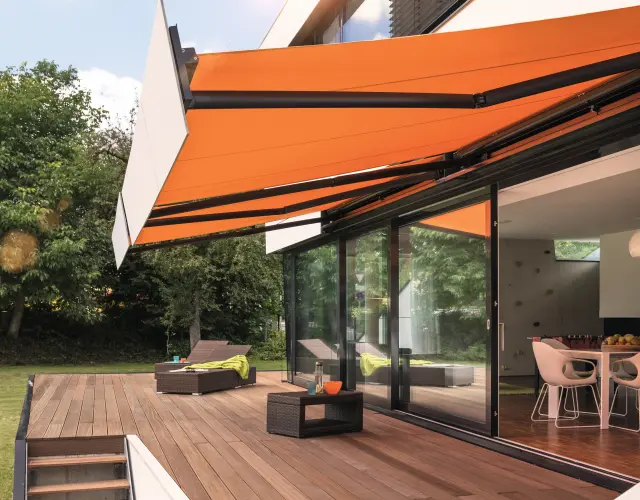 The Perea P70 awning by Warema features fabric that folds when retracted, creating a sophisticated look.
